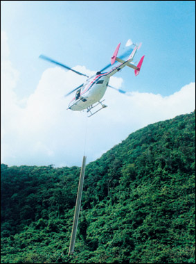 用直升飛機(jī)運(yùn)送塔料,以保證工程進(jìn)度